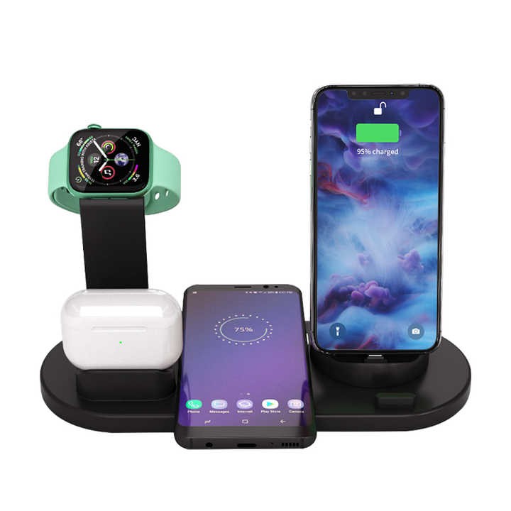 10W 4 in 1 Carregador Wireless Charger Charge Smartphone Docking Charging Station Stand Pad Fast Mobile Phone Charger