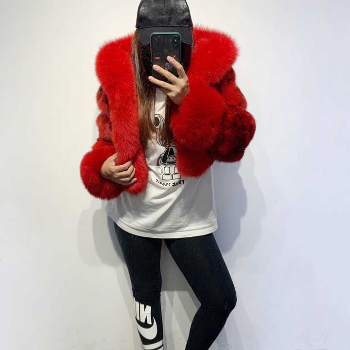 2022 New Autumn Winter Warm Hooded Real Fox Fur Jacket Women Colorful Fur Coat For Ladies