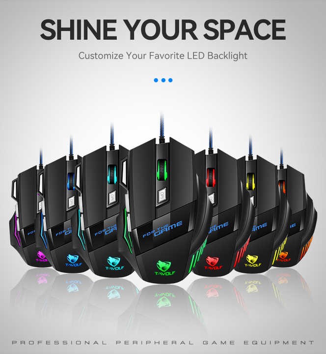 High Performance Wired Gaming Mouse RGB Spectrum Backlit Ergonomic Gaming Mice Programmable 7 Backlight Modes up to 7200 DPI