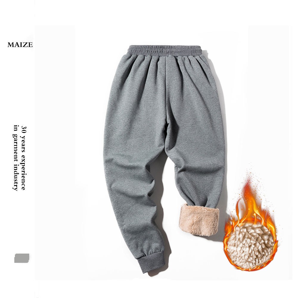 Winter Lambs Wool Lining Warm Men's Pants &Trousers Drawstring Long Sweatpants Cotton Fleece Custom Man Casual Joggers